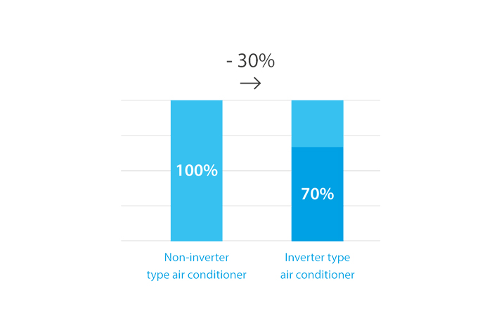 Invertteri säätää jäähdytystä ja lämmitystä jatkuvasti niin, että huoneen lämpötila pysyy sopivana. Yhdistettynä lyhyempiin käynnistysaikoihin ominaisuus ylläpitää aina ihanteellista lämpötilaa.