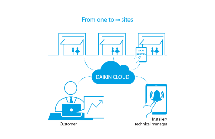 Ohjaa 1 - ∞ sijaintia Daikin-pilvipalvelun avulla.